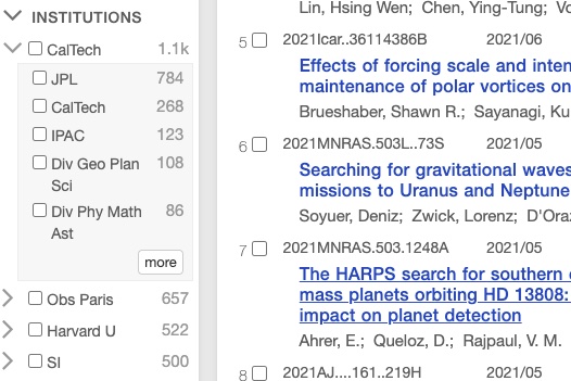 One of the features new to ADS since the new interface has launched is search and organization by institutional affiliation. The 15 million publications in ADS have more than 35 million combined author affiliations. The ADS has long wanted to...