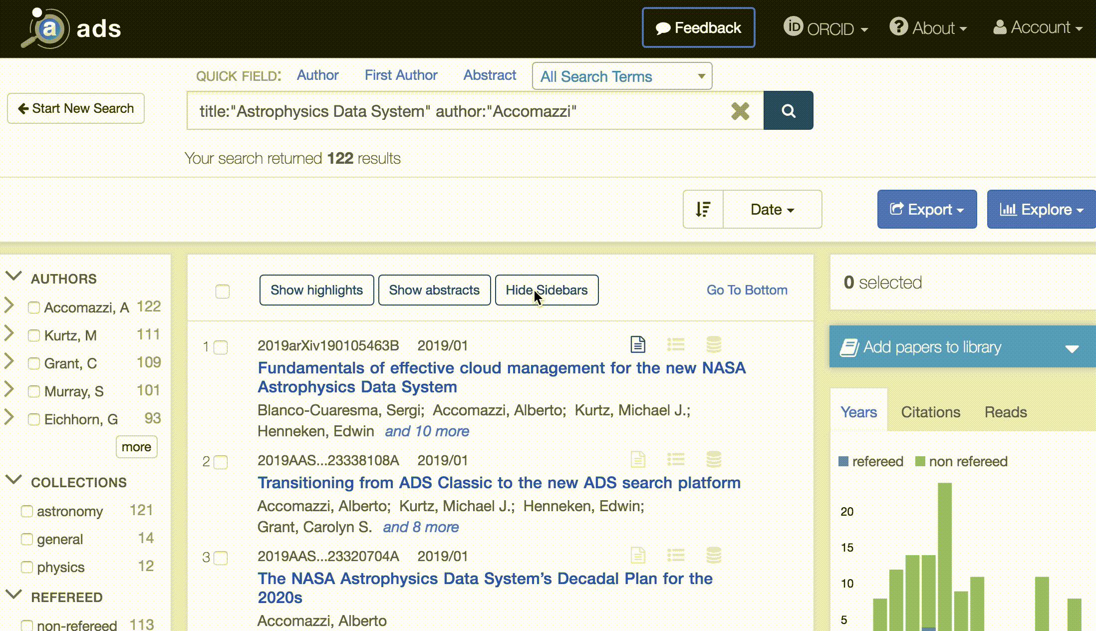 We are happy to announce the first release of the ADS libraries in Bumblebee, and are pleased to see that some people have already started using it. The ADS libraries allow you to maintain a collection of bibcodes within your...