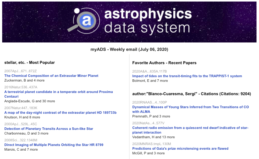 Sergi Blanco-Cuaresma is an astrophysicist and the Software Development & Operations Lead for the Astrophysics Data System, based at the Harvard-Smithsonian Center for Astrophysics. The Astrophysics Data System (ADS) is pleased to introduce the new myADS email notification system! It...