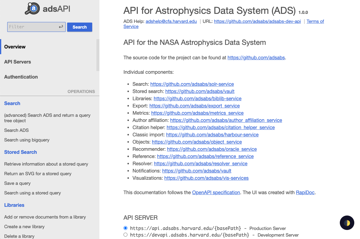 ADS’s API, or application programming interface, is the service that accepts requests and returns the requested information. For example, when a user searches in ADS, the website sends a search request to the API, which performs the search and returns...