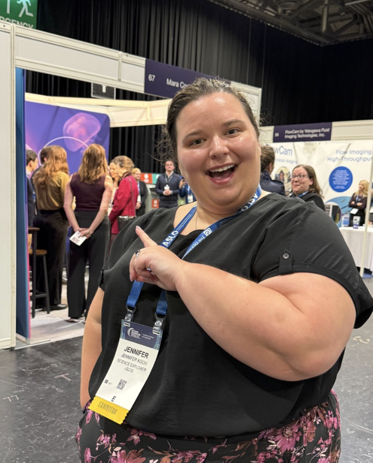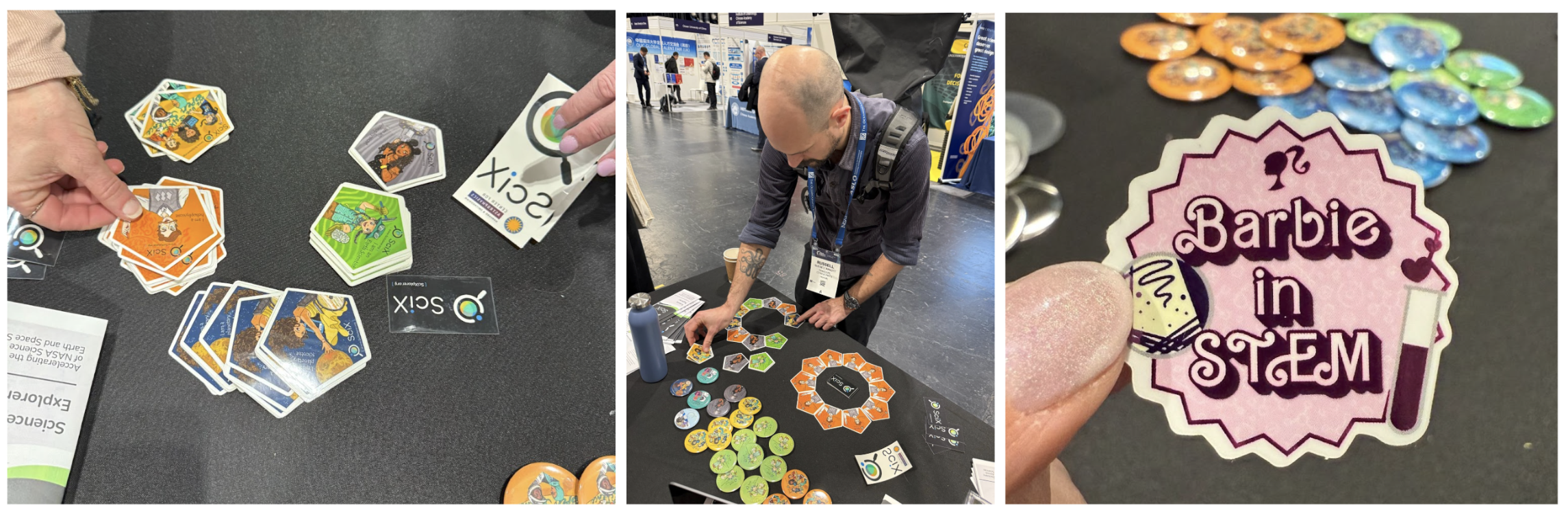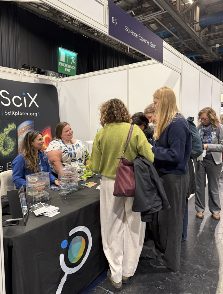 As always, a big highlight for all our booth visitors was the beautiful array of stickers and button badges designed by SciX Lead Ambassador and PhD student at UC Irvine, Yueyi Che. We ran out of our exclusive, hot-off-the-press ocean science button badges before lunchtime on Tuesday, but we had plenty of other scientists for people to collect.